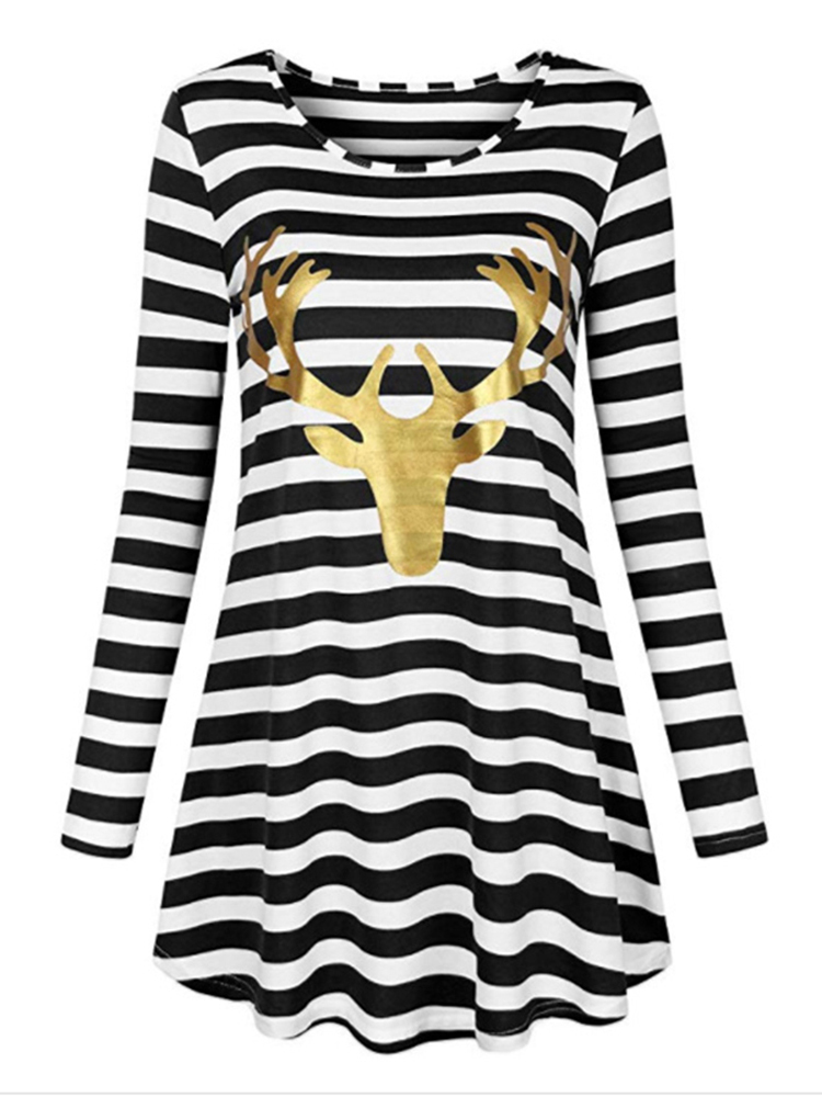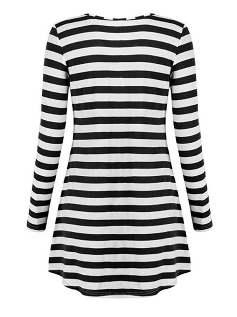 - Black Casual Trumpet Round Neck Striped Print Casual Dresses (Style V201115)