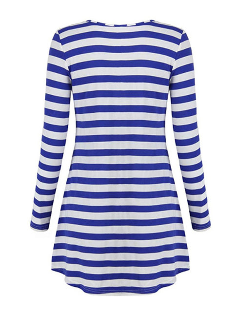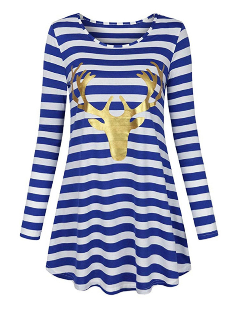 - Blue Casual Trumpet Round Neck Striped Print Casual Dresses (Style V201115)