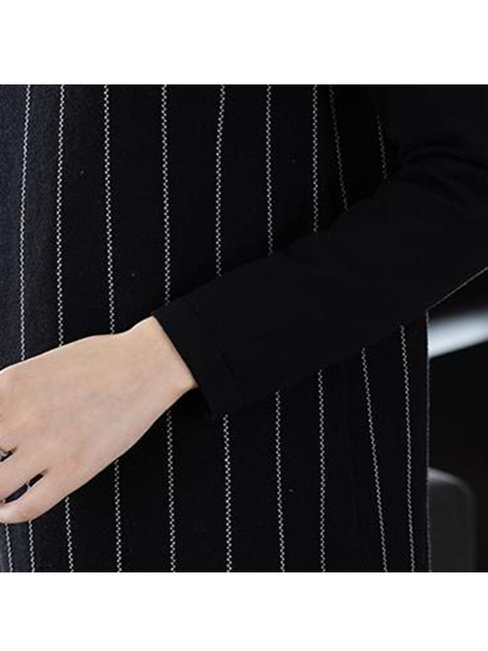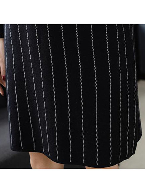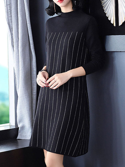 - Black Classy Round Neck Striped Pattern Polyester Midi Dresses (Style V201902)