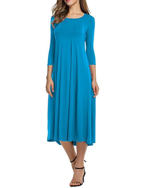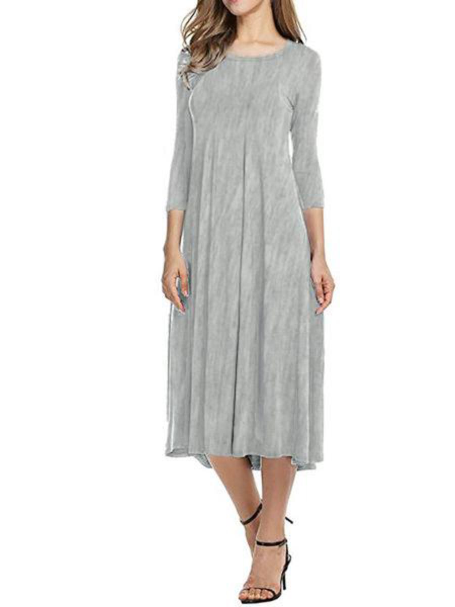 - Gray Classy T Shirt Round Neck Solid Color Polyester Casual Dresses (Style V102474)