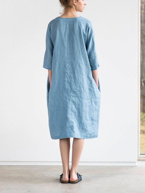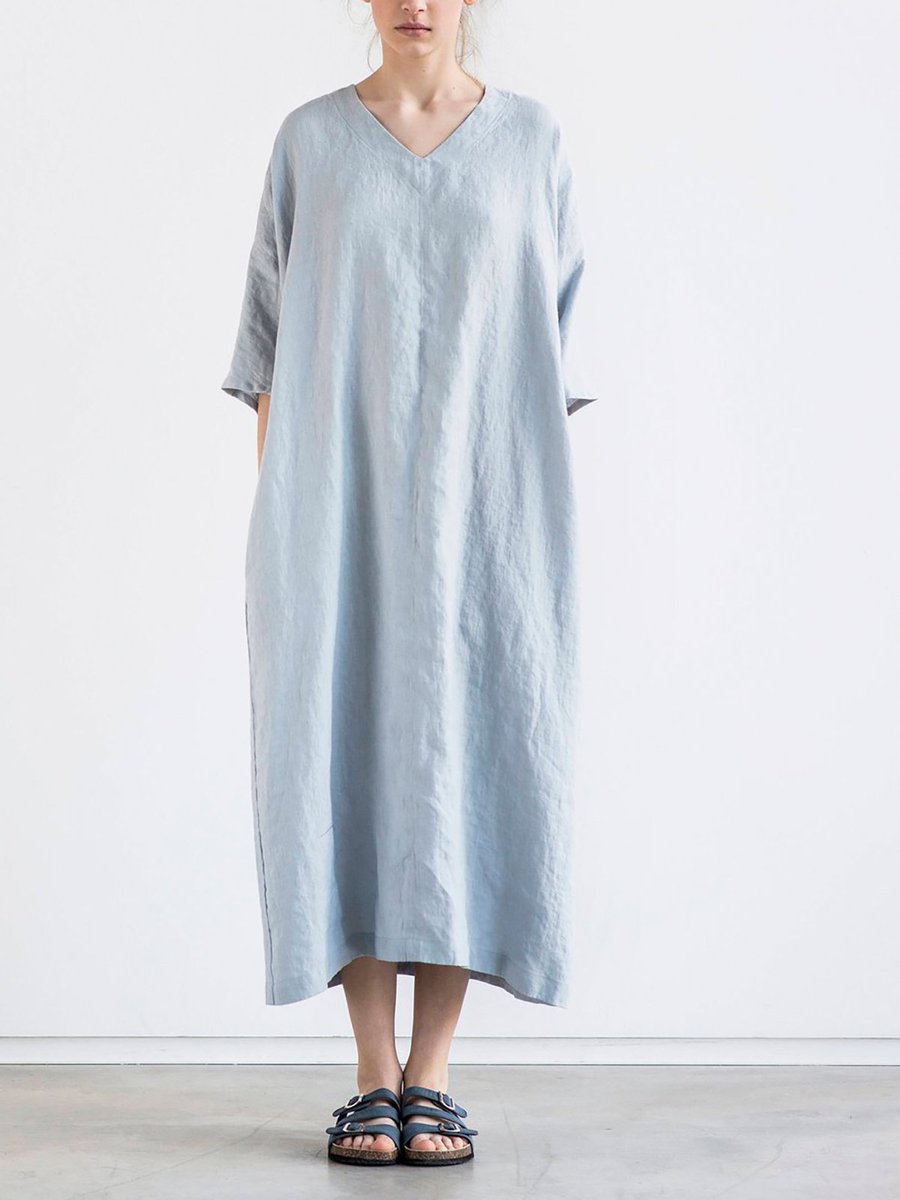 - Blue Cute Cocoon V-neck Solid Color Polyester Casual Dresses (Style V100334)