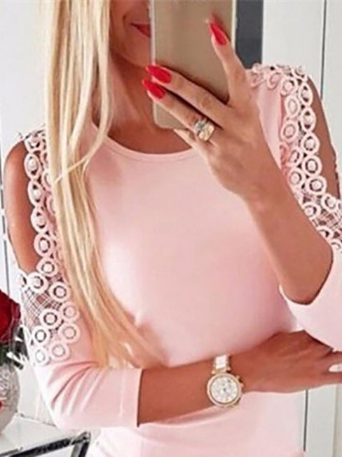 - Pink Date Night Boat Neck Solid Color Lace Polyester Mini Dresses (Style V300194)