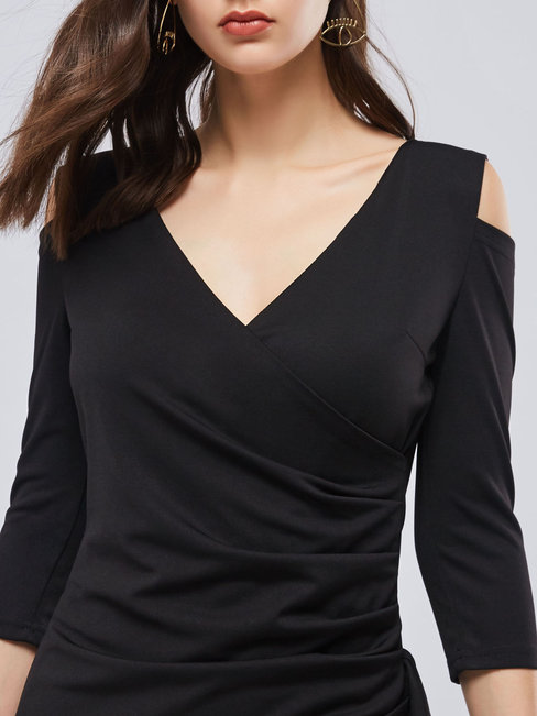 - Black Date Night Bodycon V-neck Plain Asymmetrical Bodycon Dresses (Style V200804)