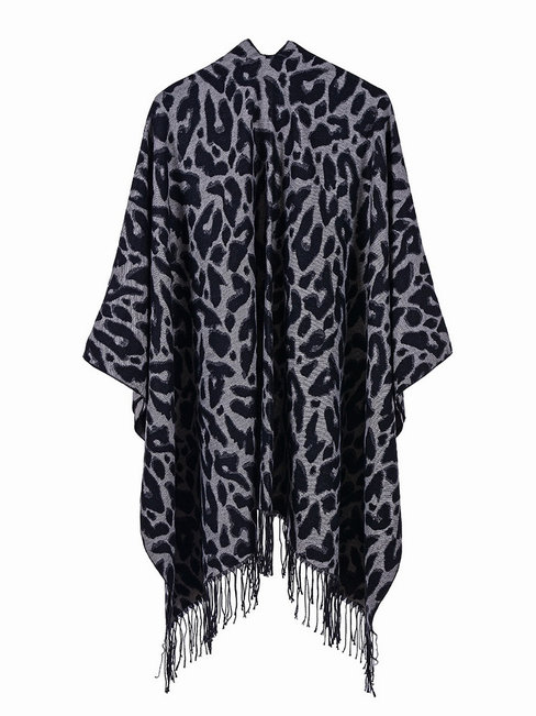 - Black Date Night Leopard Polyester Tassel Cape (Style V201922)