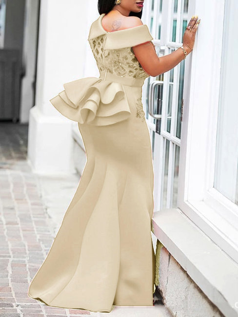 Light Apricot Date Night Mermaid Asymmetric Asymmetrical Spandex Maxi Dresses (Style V200774)