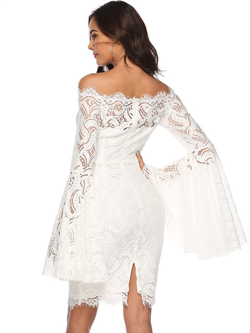 - White Elegant Bodycon Off The Shoulder Lace Polyester Bodycon Dresses (Style V201211)