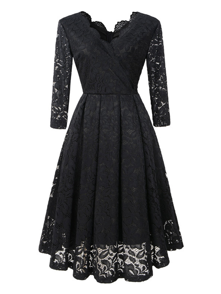- Black Elegant Expansion V-neck Lace Lace Midi Dresses (Style V201240)