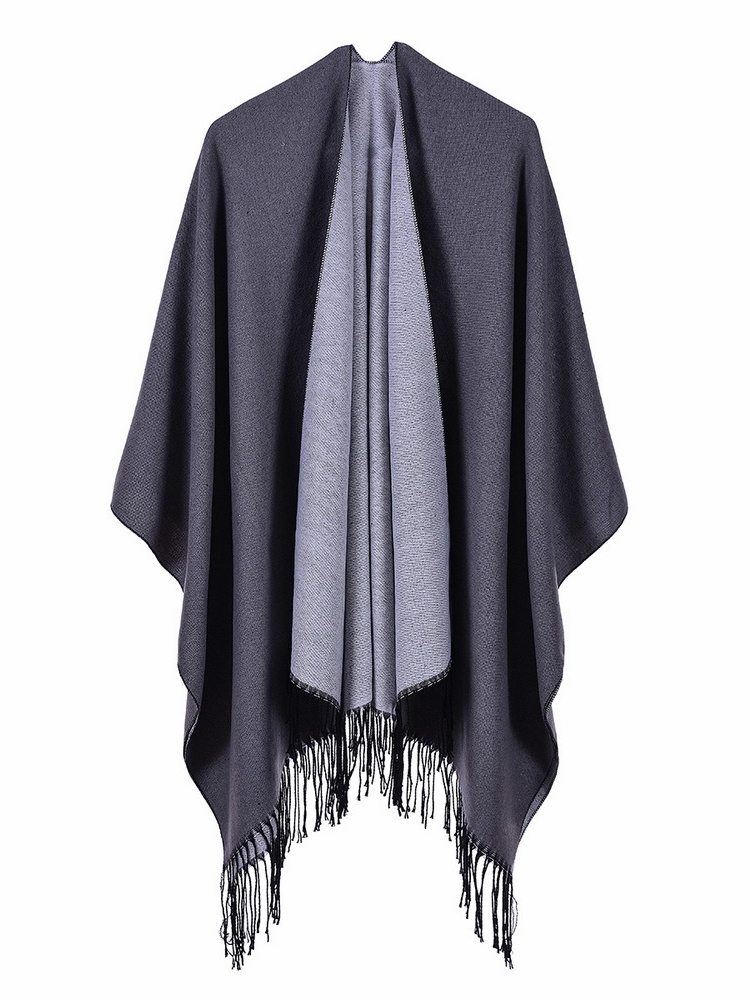 Gray Elegant Plain Cashmere Tassel Cape (Style V201923)