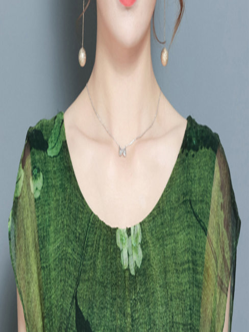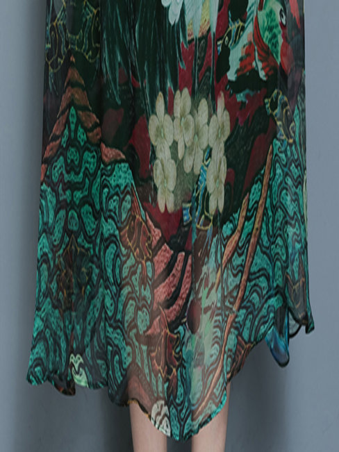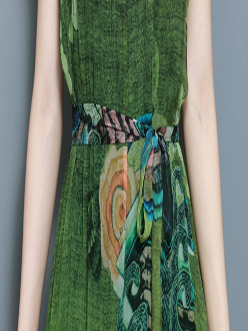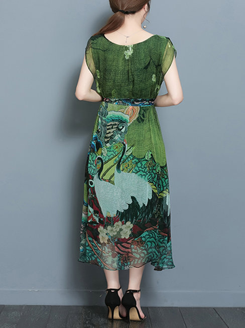 Green Elegant Round Neck Printed Pattern Polyester Casual Dresses (Style V100530)