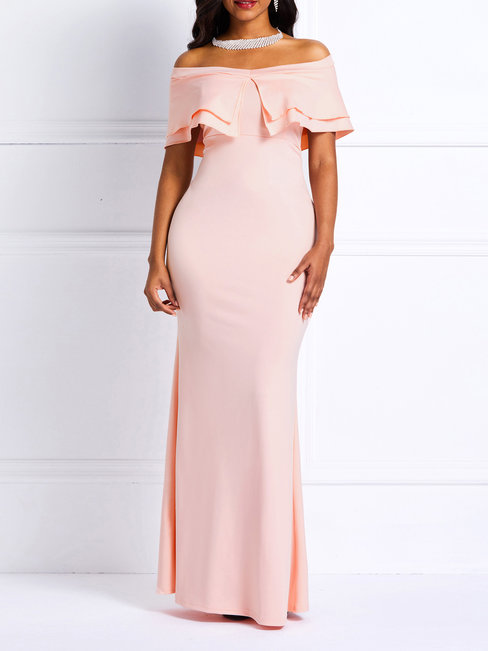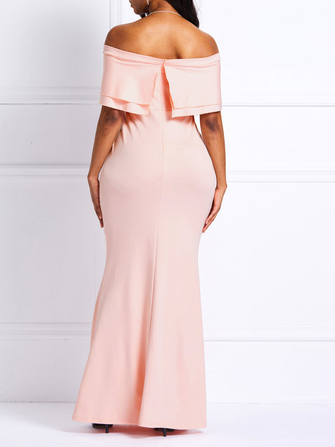 - Pink Elegant Trumpet Off The Shoulder Plain Patchwork Maxi Dresses (Style V201147)