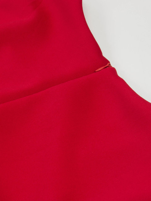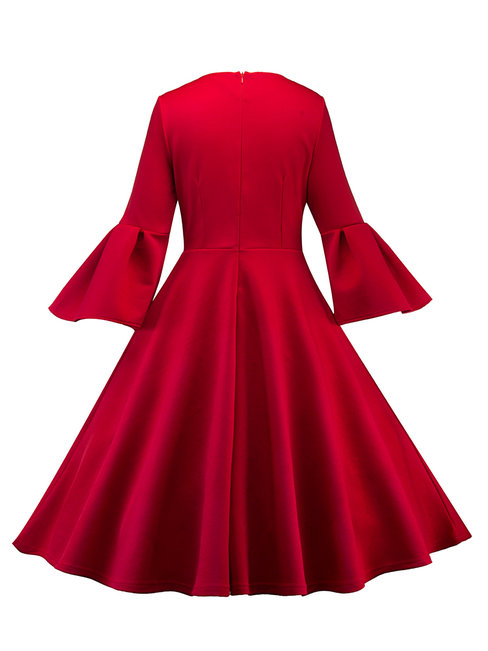 - Red Expansion Square Neck Plain Zipper Knee Length Dresses (Style V200487)