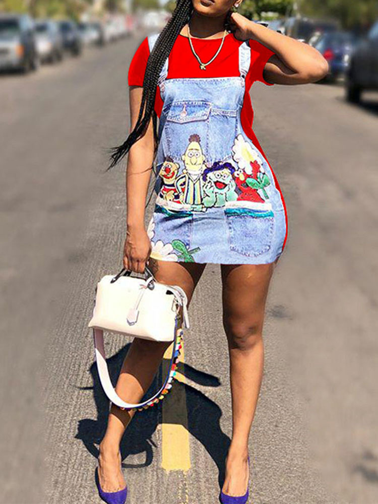 - Red Fashion A-line Color Block Print Polyester Casual Dresses (Style V201473)