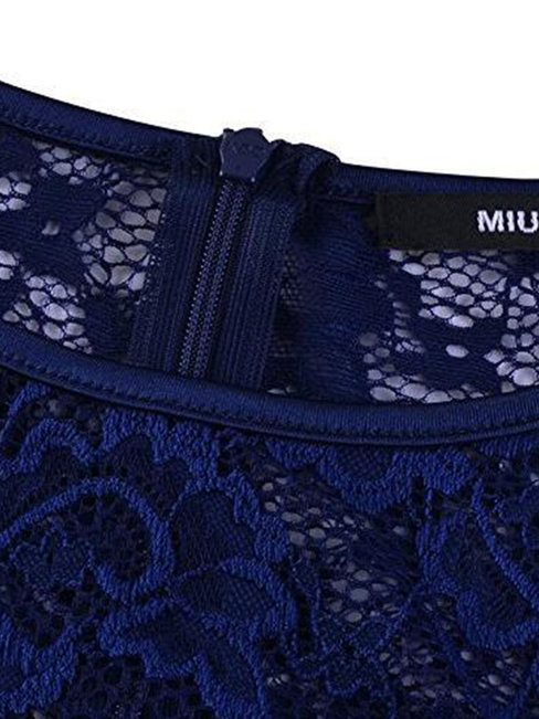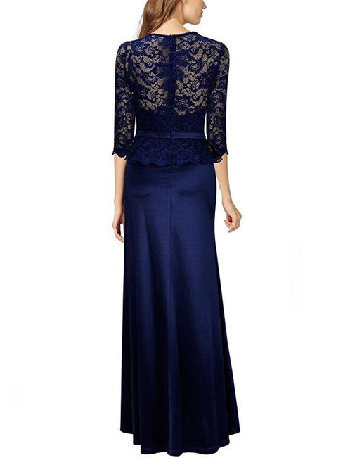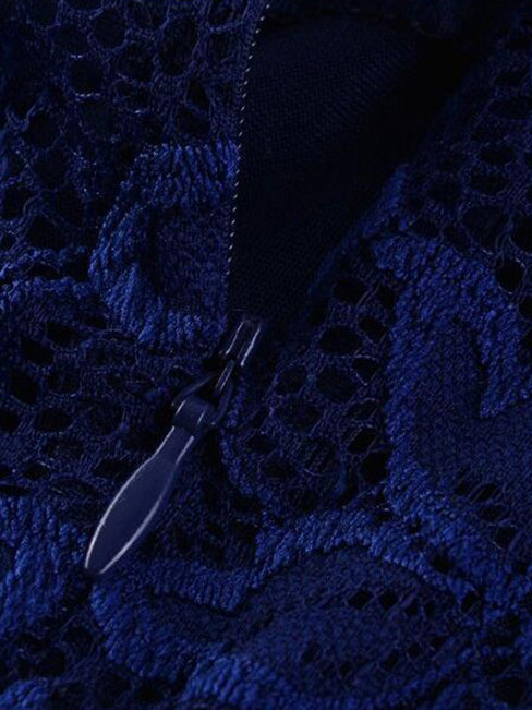 - Dark Blue Fashion A-line Round Neck Plain Patchwork Casual Dresses (Style V201306)