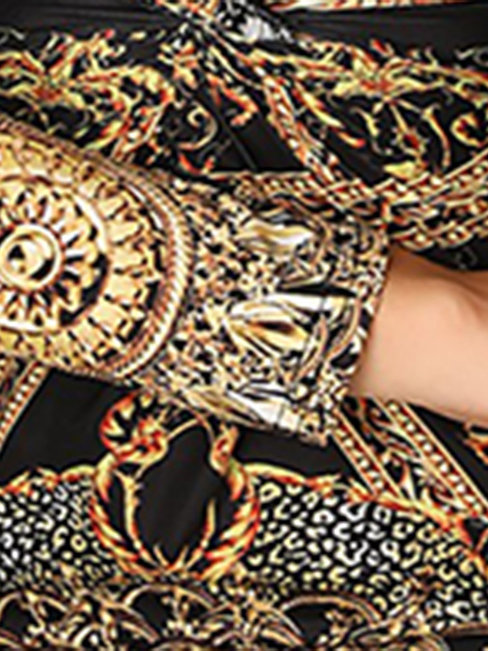 - Golden Fashion Bodycon Color Block Print Nylon Casual Dresses (Style V201339)