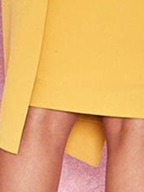 - Light Yellow Fashion Bodycon Plain Patchwork Casual Dresses (Style V201371)