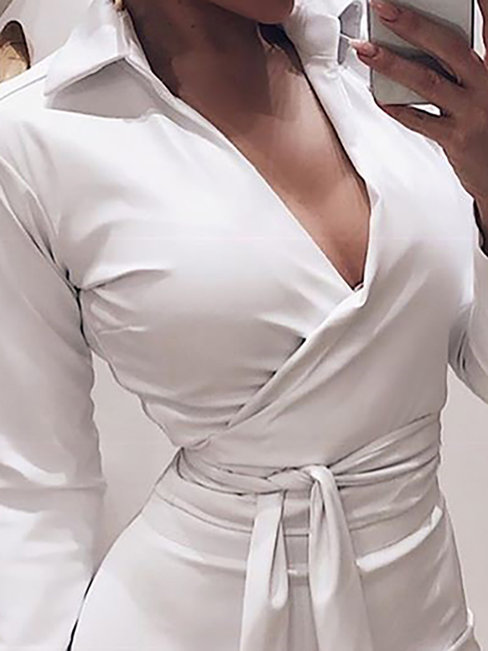 - White Going Out Bodycon Solid Color Sash Pu Leather Midi Dresses (Style V300624)