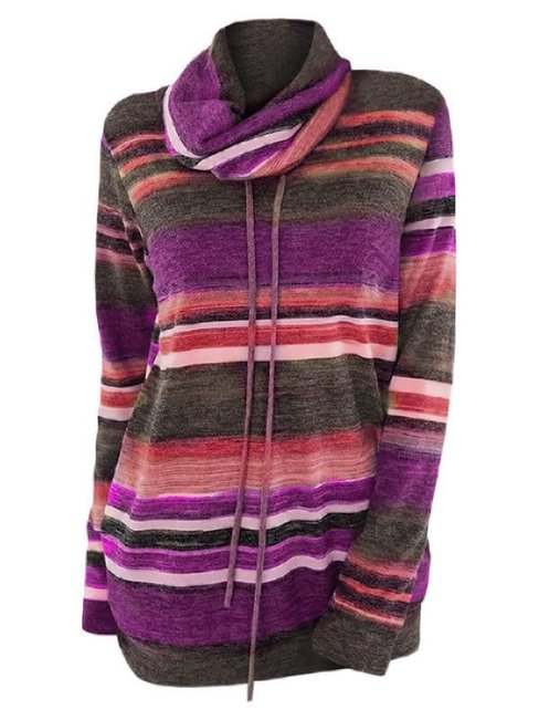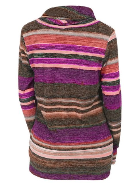 - Pink Heap Collar Long Striped Polyester Pockets Hoodie (Style V100968)