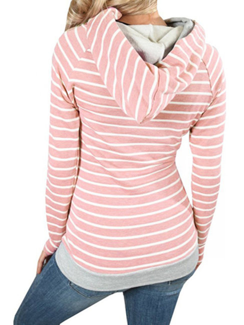 - White Heap Collar Slim Striped Cotton Pockets Sweatshirts (Style V100722)