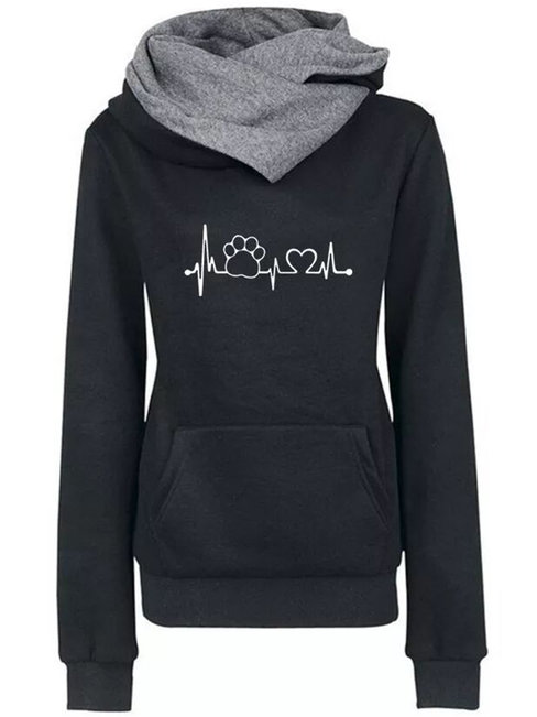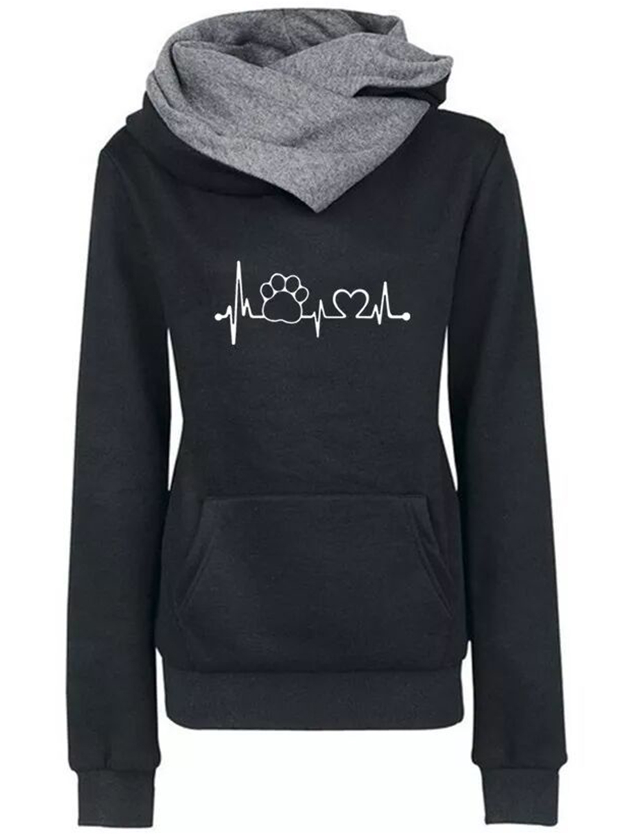 - Black Heap Collar Standard Loose Casual Heart Shaped Sweatshirts (Style V100668)