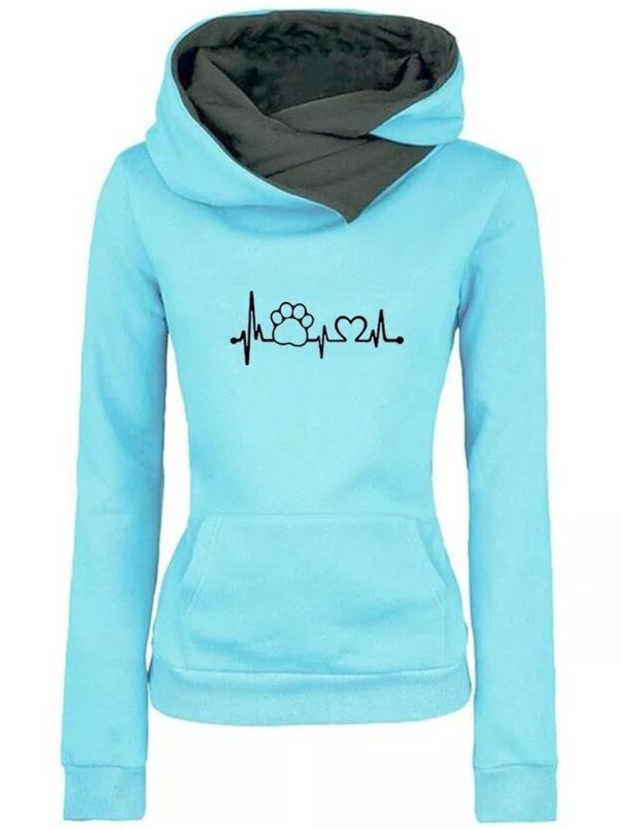 - Light Blue Heap Collar Standard Loose Casual Heart Shaped Sweatshirts (Style V100668)