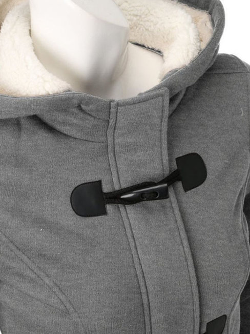 - Light Gray Hooded Long Elegant Wool Button Coat (Style V101639)