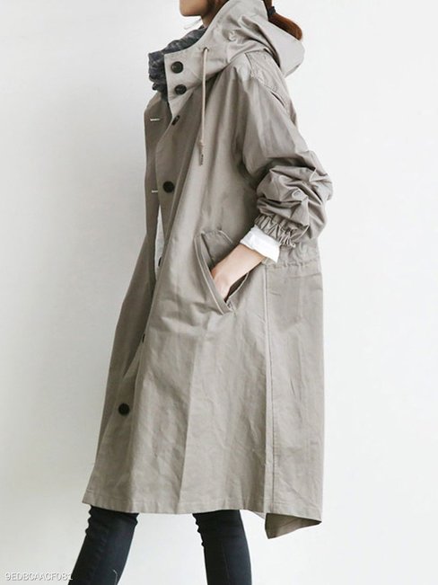 Grey Hooded Long Loose Date Night Button Coat (Style V101360)