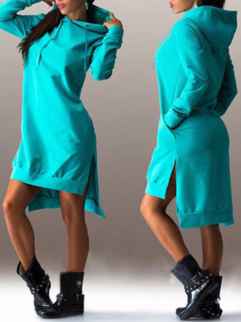 - Blue Green Hooded Long Sexy Plain Pockets Sweatshirts (Style V100744)