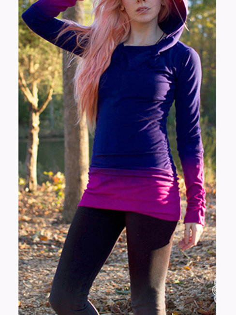 - Grey Hooded Long Slim Casual Gradient Sweatshirts (Style V100731)
