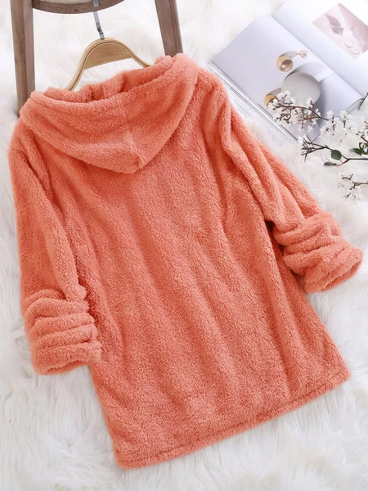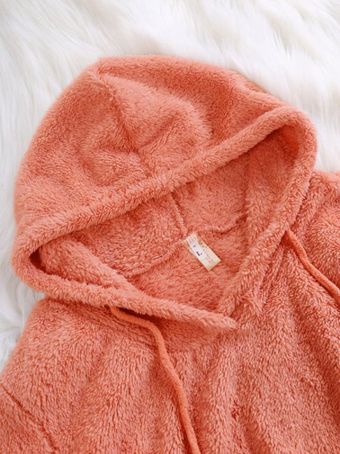 - Orange Hooded Loose Casual Plain Polyester Sweatshirts (Style V100759)