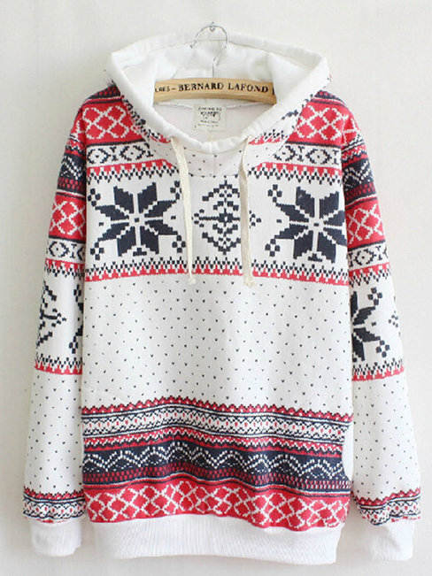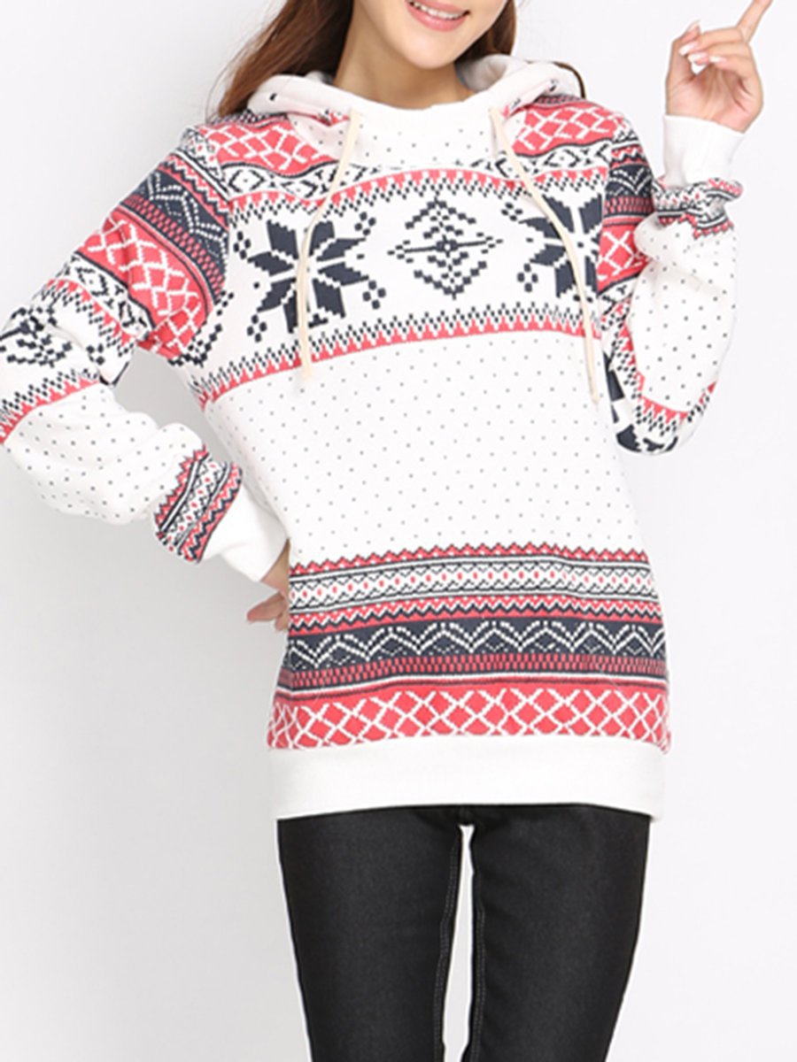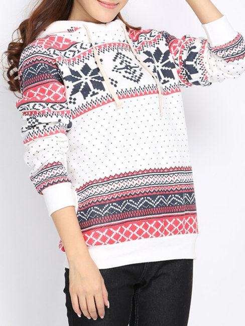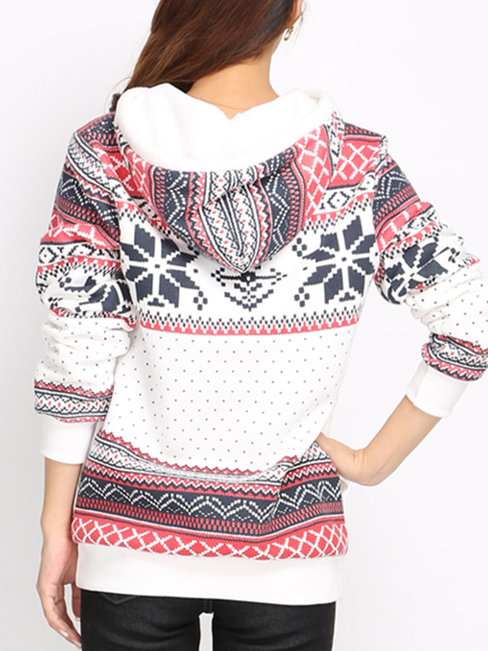 - White Hooded Loose Floral Polyester Pattern Hoodie (Style V100819)