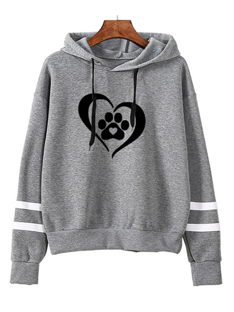 - Grey Hooded Loose Sweet Heart Shaped Pattern Sweatshirts (Style V100632)