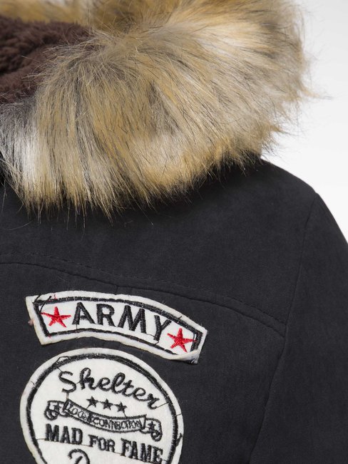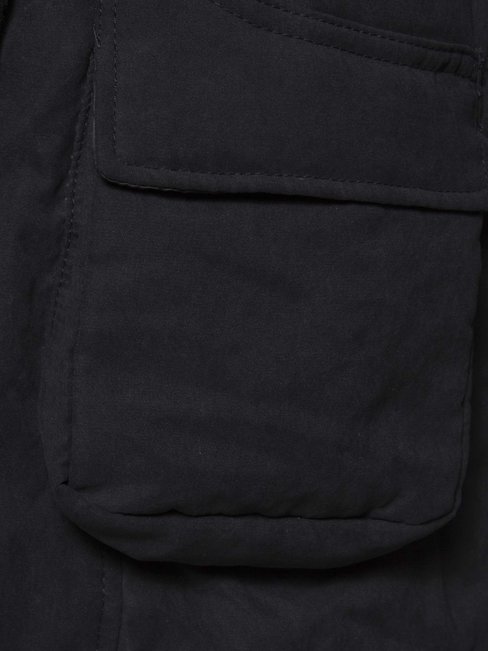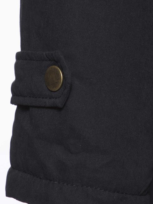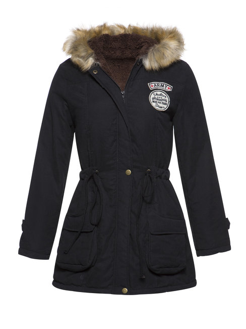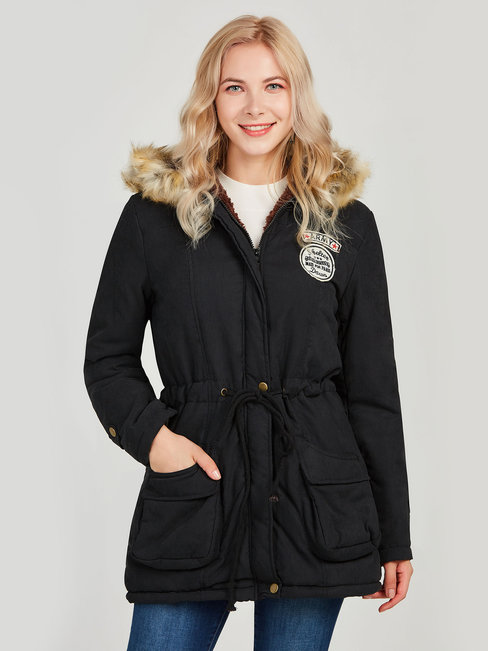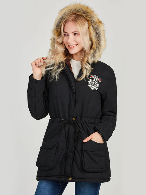 - Black Hooded Midi Plain Cotton Blends Strappy Coat (Style V201604)
