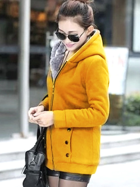- Yellow Hooded Midi Straight Plain Hoodie (Style V200357)