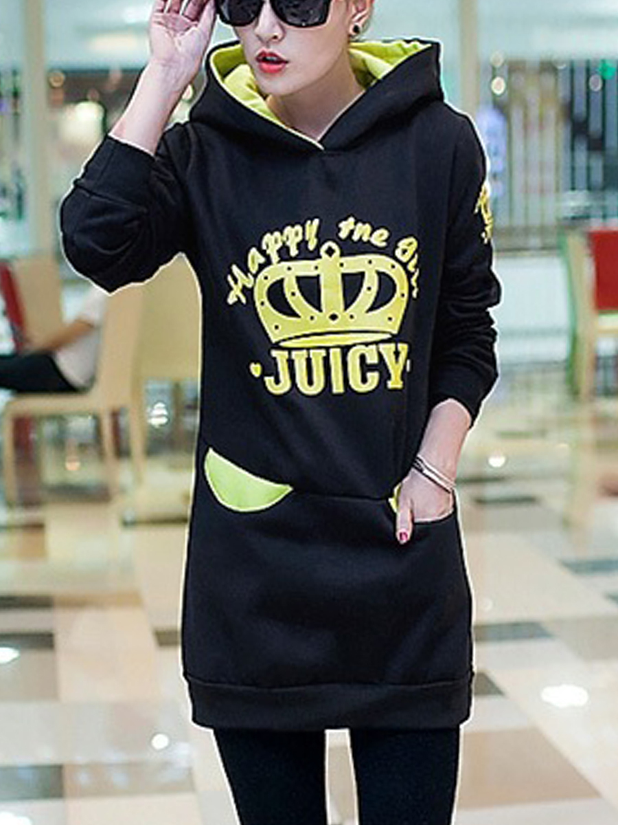 - Black Hooded Slim Letter Cotton Blends Pockets Hoodie (Style V100838)