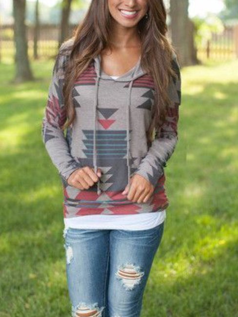 - Grey Hooded Standard Casual Geometric Cotton Blends Hoodie (Style V100578)