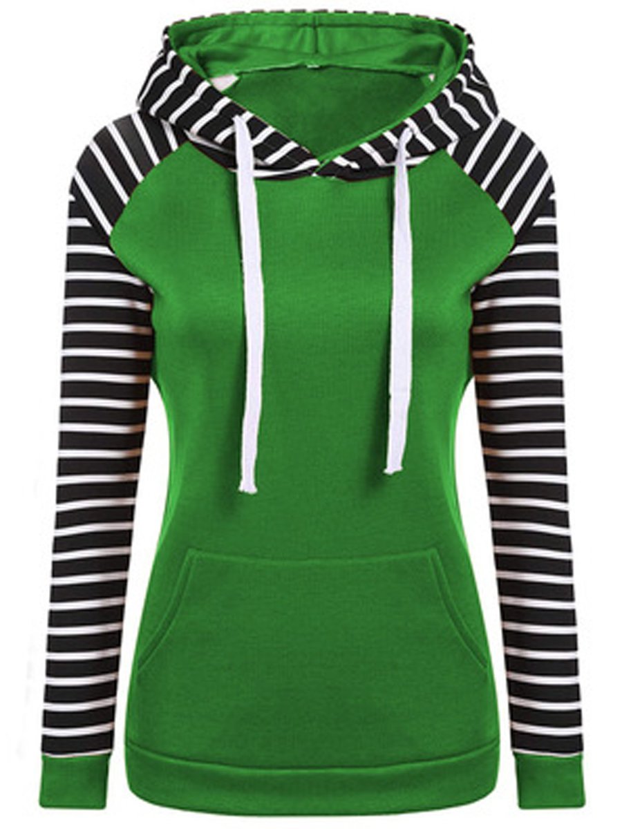 - Green Hooded Standard Casual Geometric Pattern Hoodie (Style V100574)