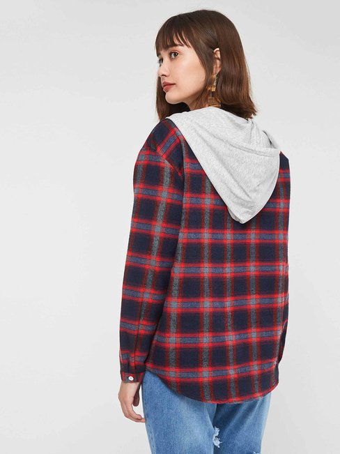- Dark Blue Hooded Standard Loose Fashion Strappy Hoodie (Style V201770)