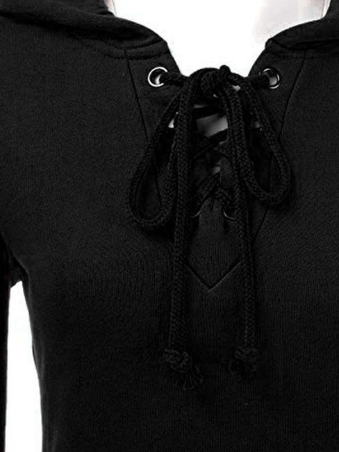 - Black Hooded Standard Loose Fashion Strappy Sweatshirts (Style V100669)