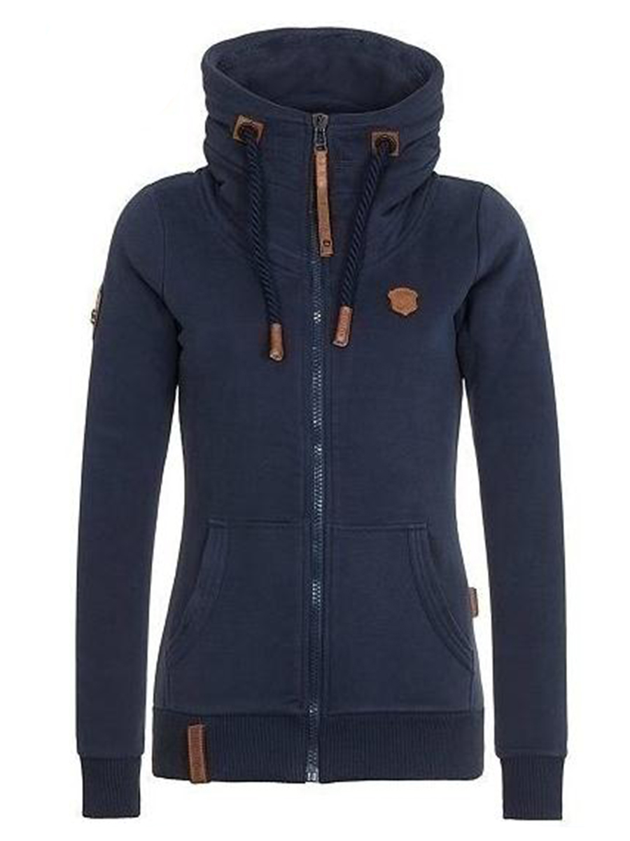 - Dark Blue Hooded Straight Casual Plain Cotton Blends Sweatshirts (Style V201623)