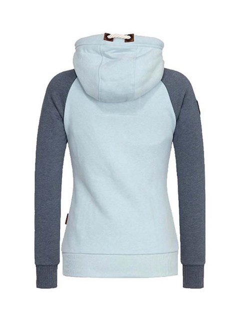 - Copen Blue Hooded Straight Casual Polyester Patchwork Hoodie (Style V201681)