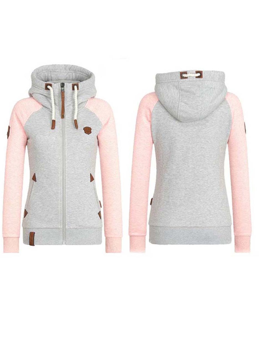 - Pink Hooded Straight Casual Polyester Patchwork Hoodie (Style V201681)