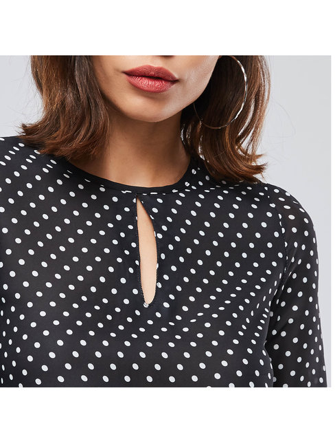Black Keyhole Neckline Short Loose Date Night Pattern Blouse (Style V201719)