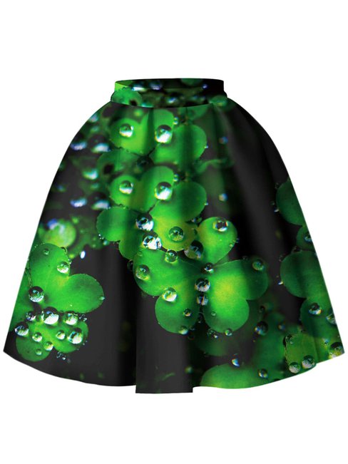 Green Knee Length Sweet Pattern Polyester Plants Skirt (Style V101814)
