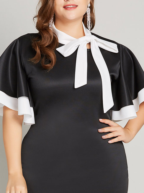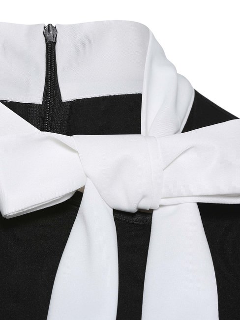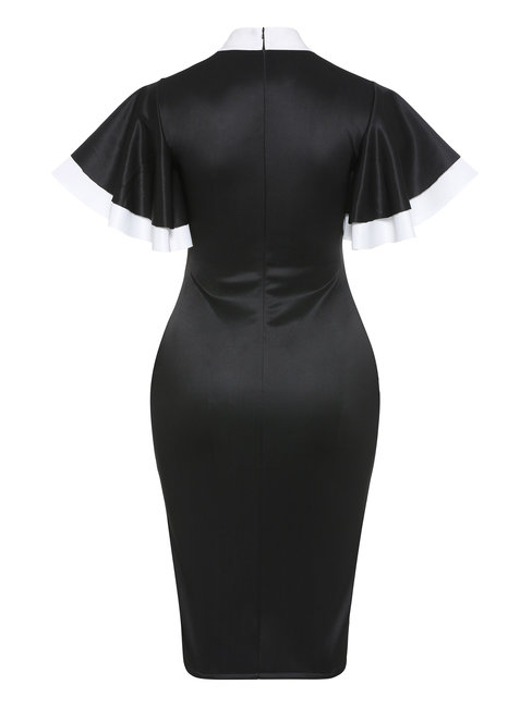 - Black Ladylike Pencil Bow Collar Patchwork Polyester Work Dresses (Style V200721)