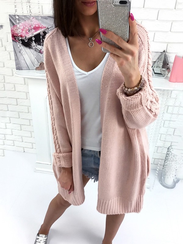 Pink Long Loose Casual Plain Acrylic Sweater (Style V100887)