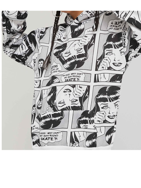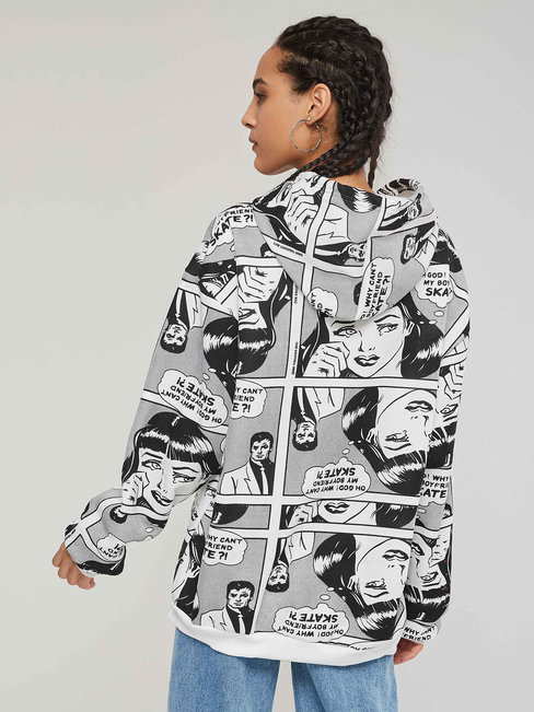 - White Long Loose Fashion Cotton Pattern Hoodie (Style V201730)