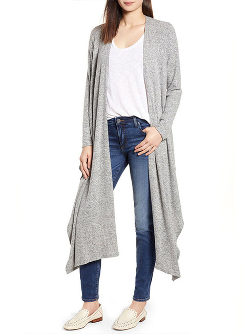 - Gray Long Loose Fashion Plain Knitted Blouse (Style V201799)