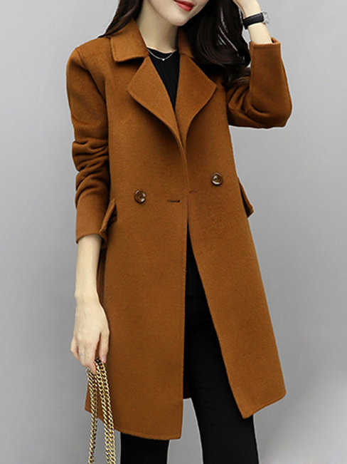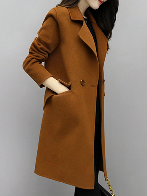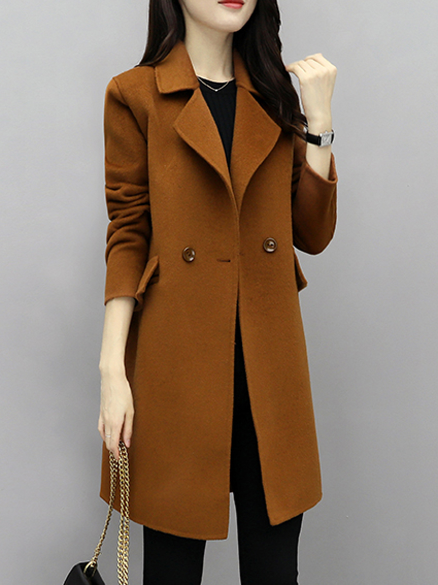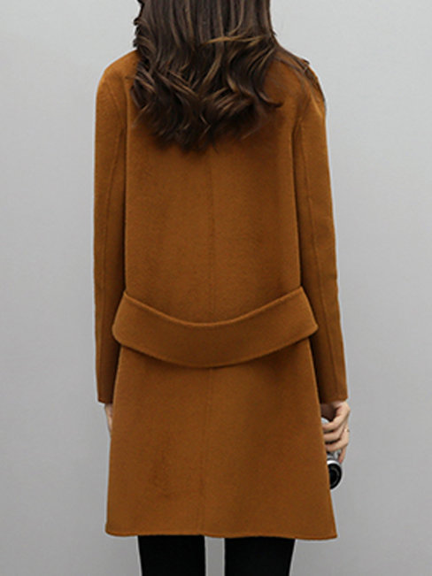 Brown Long Slim Date Night Plain Wool Blends Coat (Style V101655)