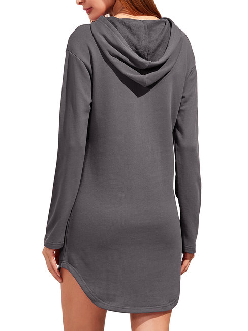- Grey Long Slim Plain Cotton Blends Pockets Hoodie (Style V100832)