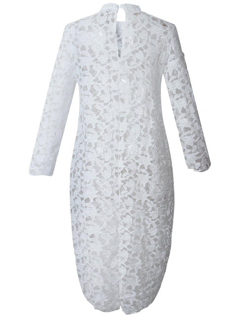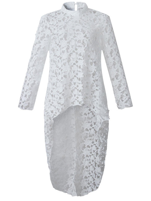- White Long Slim Sexy Acrylic Asymmetrical Blouse (Style V201358)